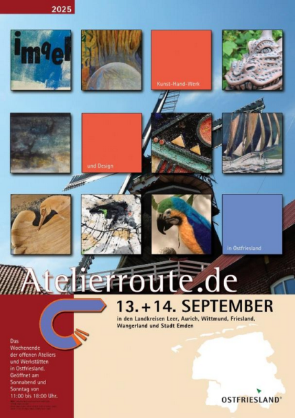 Die Initiative für Kunst-Hand-Werk und Design in Ostfriesland vereint Künstler und Kunsthandwerker zur ATELIERROUTE, einem Wochenende der offenen Ateliers und Werkstätten in Ostfriesland.